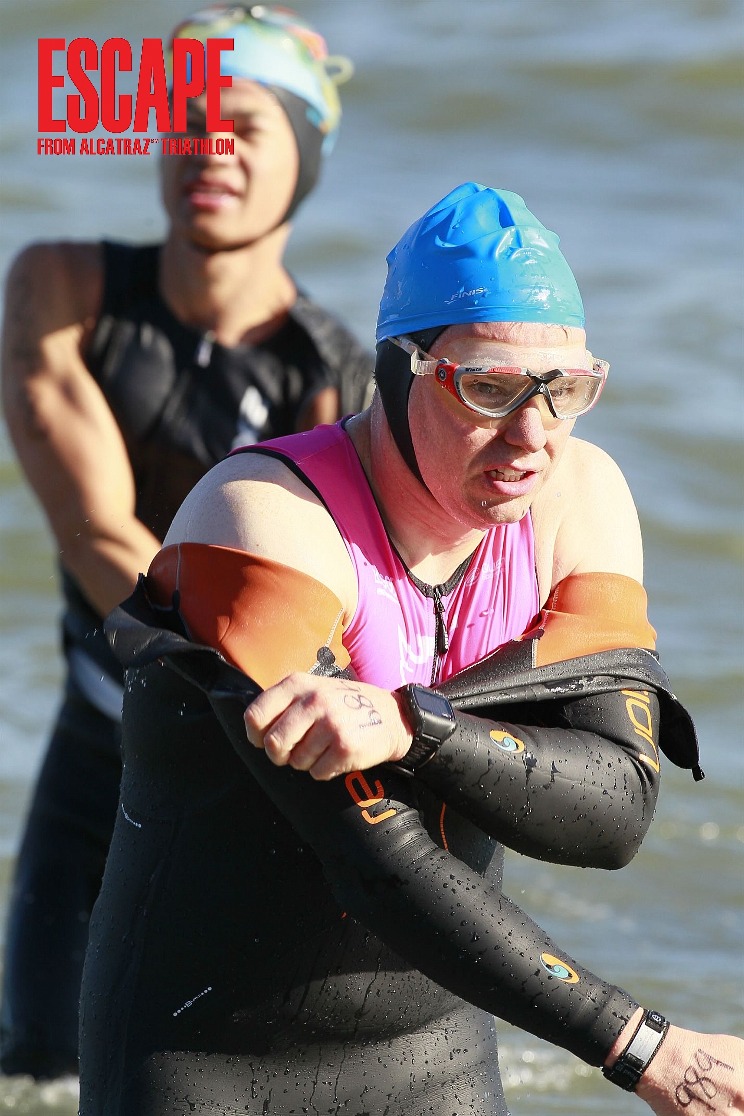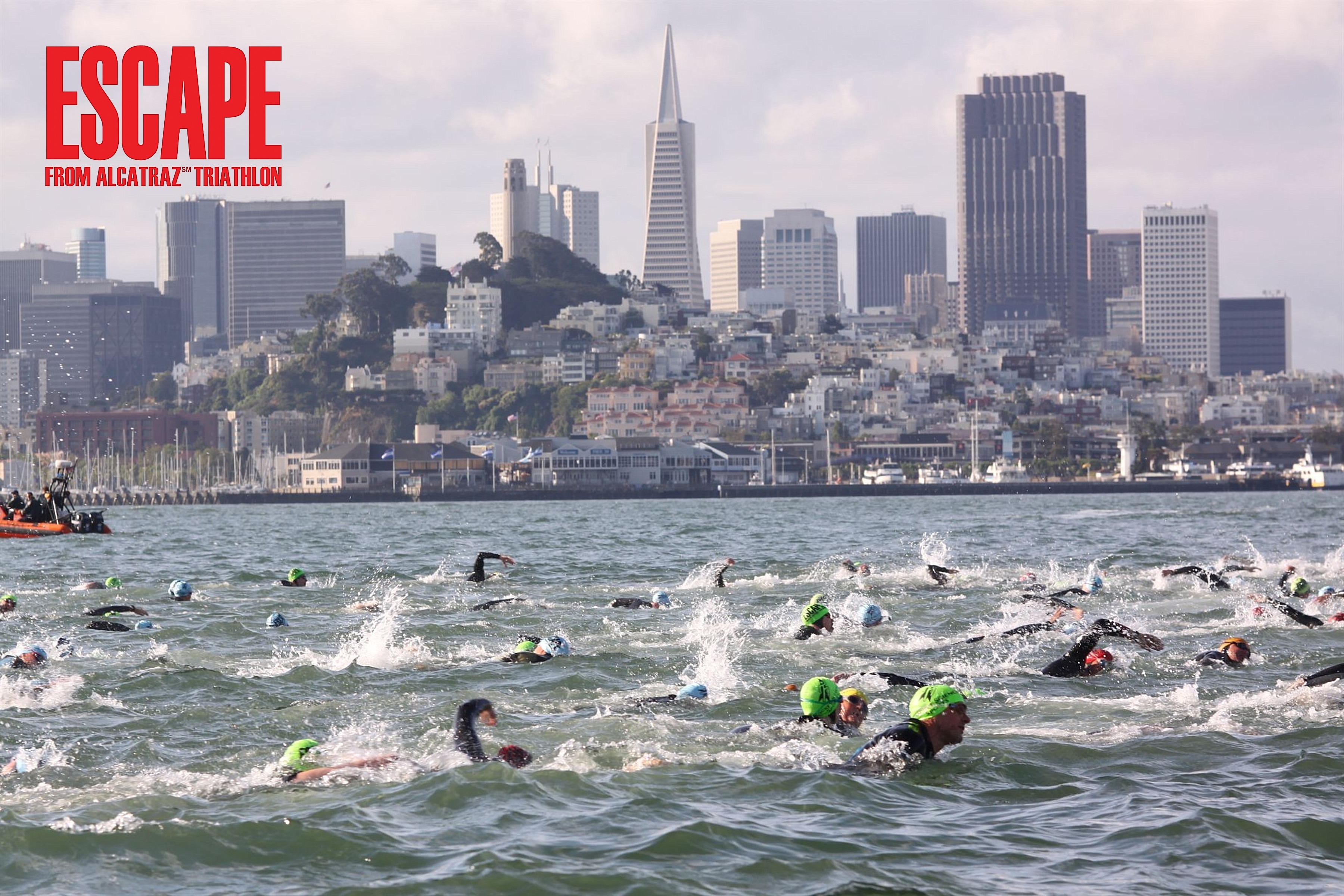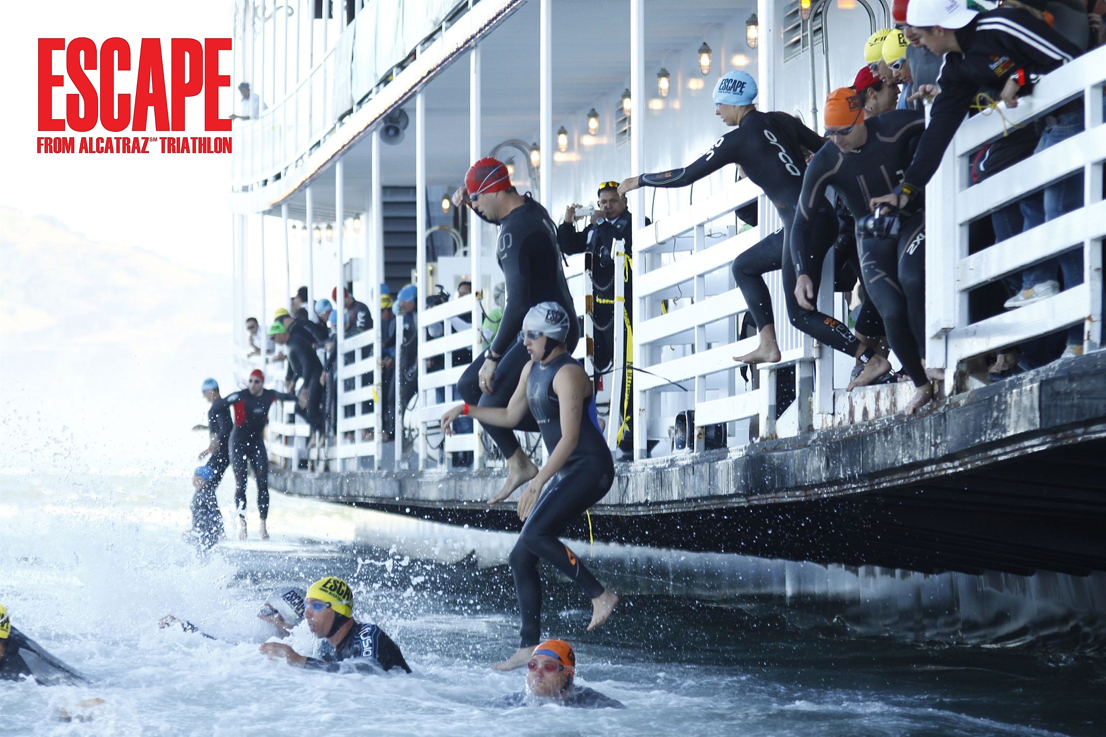 …..On Sunday 10th June at 07:30 (ish) just off shore of Alcatraz with a shout of “shit!” I took a big leap for Dave-kind and jumped into the cold water of San Francisco bay to begin my escape, I wasn’t alone, I had 1999 other athletes for company as well as 100 boats or so in the water to help guide this unusual flock to the shore. My ESCAPE from ALCATRAZ was on!